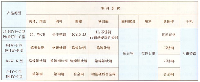 主要零件材料: